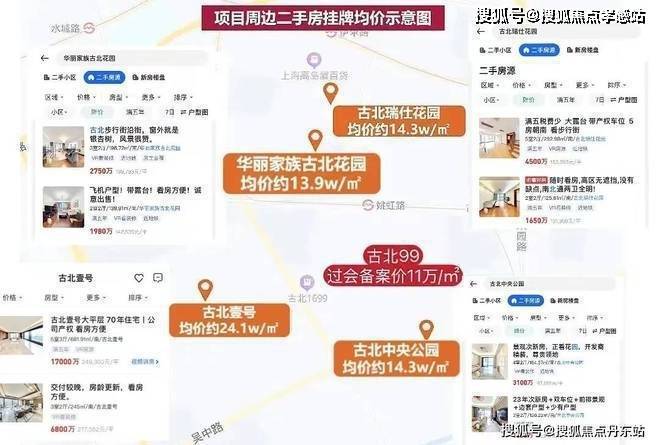 房龄近20年的二手房也都要13w+/㎡了,华丽家族古北花园均价约13.9w/㎡,古北瑞仕花园均价约14.3w/㎡!