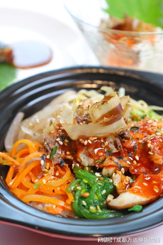 五色新鲜时蔬搭配主厨秘制韩式辣酱,还原地道韩式风味,鲜红的酱汁裹挟着蒜香,在滚烫的石锅上瞬间蒸腾起诱人的焦香。随着木勺的翻拌,蔬菜在高温中欢快跳跃,发出“滋滋”的悦耳声响,辣酱的馥郁辛香与蔬菜的清甜交织升腾,热雾中闪烁着油润的光泽。一勺入口,脆嫩与柔滑碰撞,微辣回甘的韩式风味在舌尖绽放,让人仿佛置身首尔街头,尽享地道韩食的鲜活魅力!