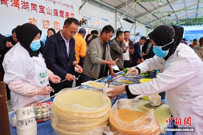 9月2日,“中华美食荟”青海家宴品鉴暨“拉面+骑行+文旅多业态融合”消费场景发布活动在青海省海北藏族自治州海晏县同宝山露营基地启幕。此次活动以“消费新场景 湖畔新美景——这么静,那么美,享在青海湖”为主题,以美食为窗口、生态为底色、融合为路径,深度呈现了青海服务消费的创新实践与丰硕成果。图为游客品尝青海特色小吃酿皮。中新社记者 薛蒂 摄