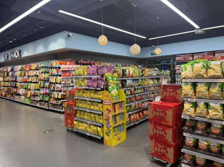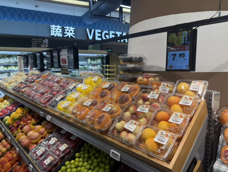 踏入蔬果区域,一眼望去,各类蔬果整齐排列,鲜红的苹果泛着诱人的光泽,金黄的香蕉成串悬挂,散发着淡淡的香甜气息……从日常的土豆、西红柿到异域风情的火龙果、猕猴桃,应有尽有,满足了消费者对味蕾的所有幻想。为了方便顾客,超市还贴心设置了现场切配区,让健康与美味触手可及,为购物之旅增添一份别样的惬意。