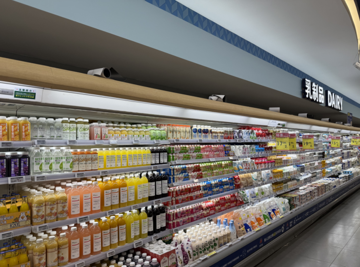 低温奶制品区域更是亮点纷呈,长达数十米的冷藏柜中陈列着近百种乳制品。鲜奶系列涵盖了从本地品牌到国内高端鲜奶;酸奶种类尤其丰富,包括浓稠型酸奶、饮用型益生菌酸奶以及近年来流行特色酸奶等。该区域还特别设置了果蔬汁专区,低温冷藏的储存方式,将最大程度还原果汁新鲜酸甜的口感。